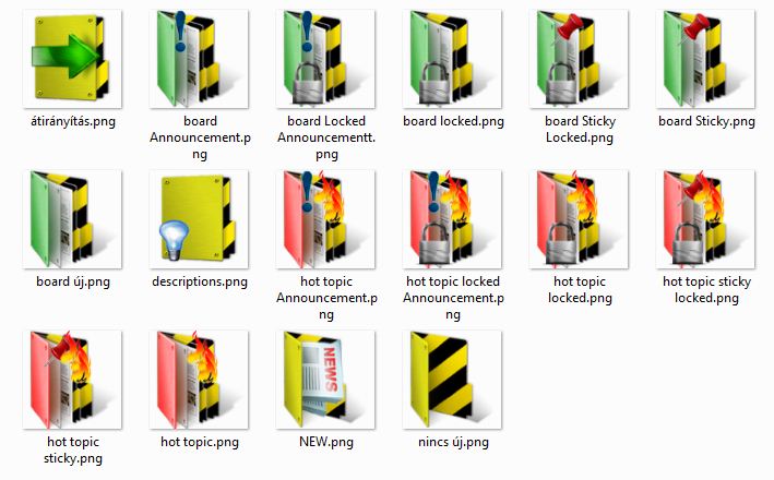S persze az ikonjaimnak is egyedinek kellett lenniük, ezért ikonkészletekből készítettem el a saját egyedi mappa-ikonjaimat, amiket szintén egy összefoglaló képen láthatsz.